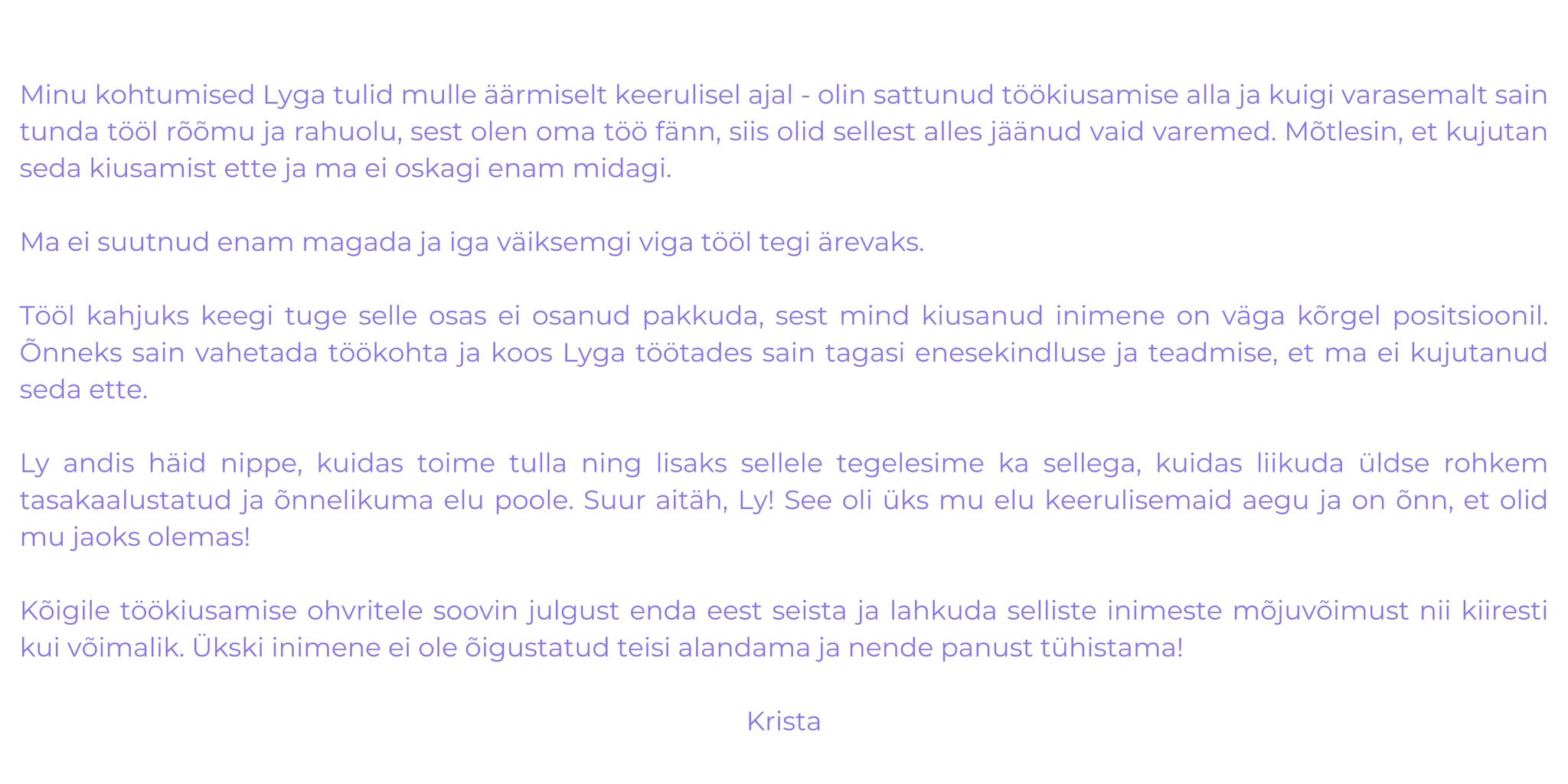 Pean oluliseks iga inimese ja olukorra eripära ning terviklikku lähenemist.